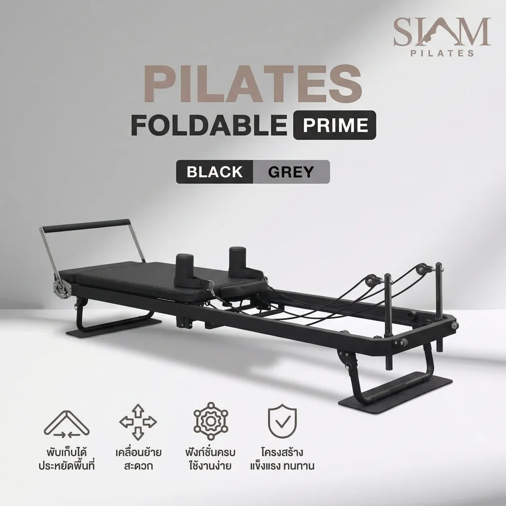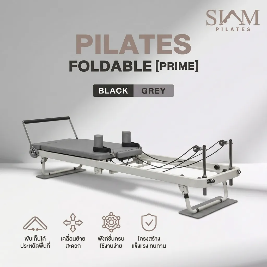 Pilates Foldable Prime คือ เครื่องพิลาทิสแบบพับเก็บได้ (Pilates Reformer Foldable) ระดับพรีเมียม ที่ถูกออกแบบมาเพื่อให้คุณสามารถ “ยกสตูดิโอพิลาทิสมาไว้ที่บ้าน” ได้อย่างสมบูรณ์แบบ รองรับทั้งการฝึกแบบ Core Training, Strength Training, Mobility, Flexibility และ Rehabilitation ภายในเครื่องเดียว